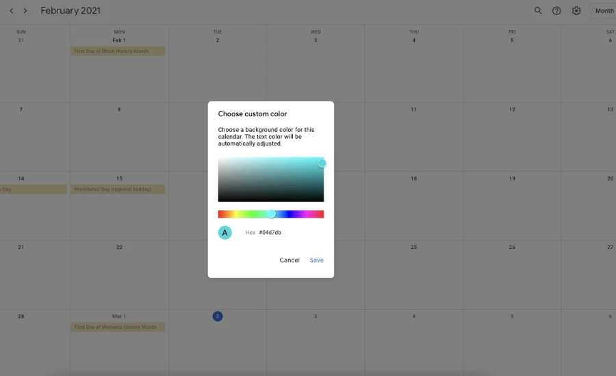 Your calendar now has a color that no default option could give you. This is great if you want your calendar to match your brand colors, your aesthetic preferences, or just a specific vibe you’re going for.