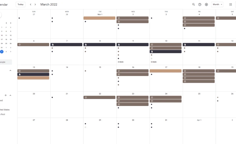 Using too many colors. If you assign a different color to every single event, nothing stands out. Your brain can’t form patterns. Stick to 5–7 categories maximum.